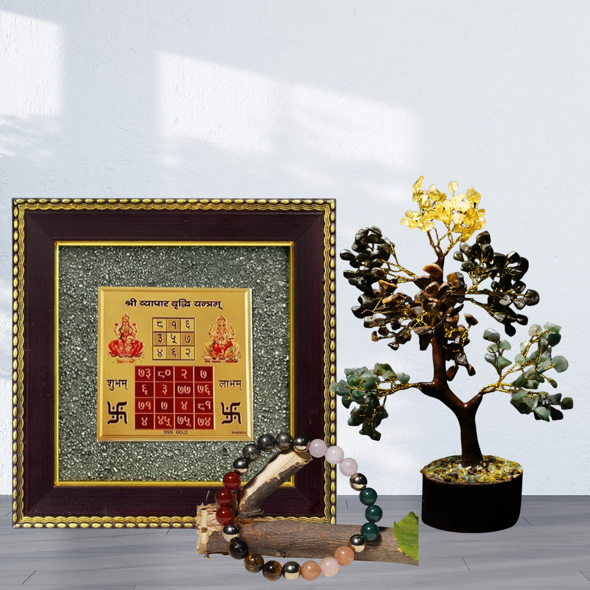 Includes: Pyrite Vyapar Vriddhi Frame, Dhan Vriddhi Bracelet & Wealth Tree