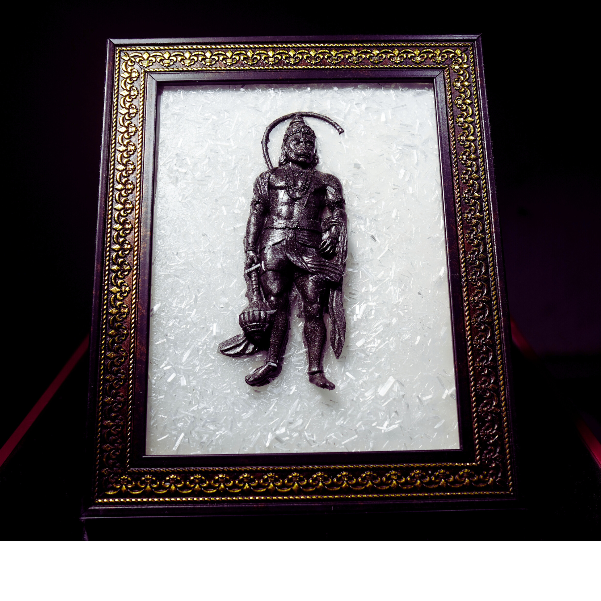 The Pyrite Frame Hanuman symbolizes strength, courage, and protection. Made from natural pyrite, it is believed to ward off negative energies and bring resilience and vitality to its owner.