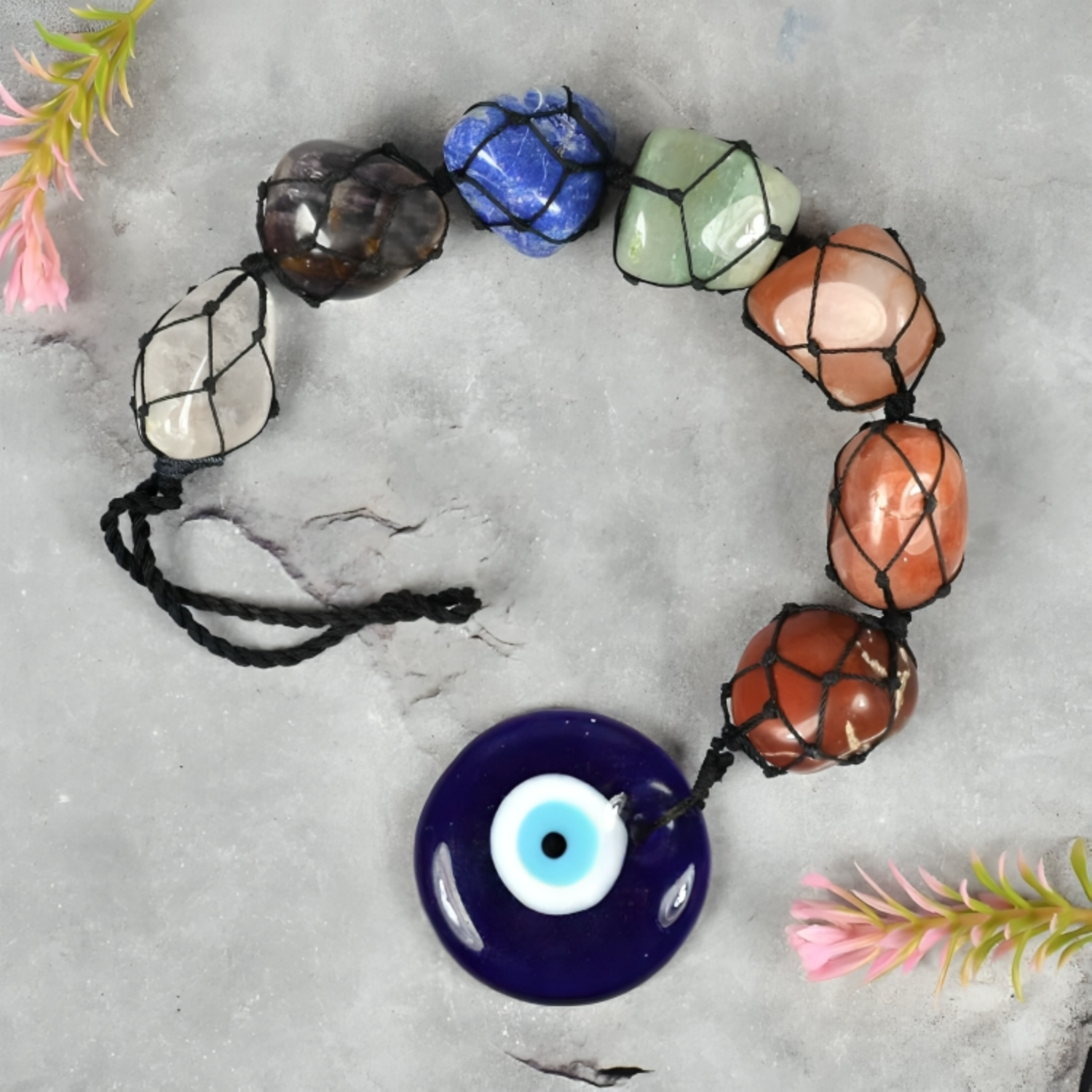 Beautiful Natural 7 Chakra Tumble Stone Hanging with Evil Eye made from high-quality stones.
